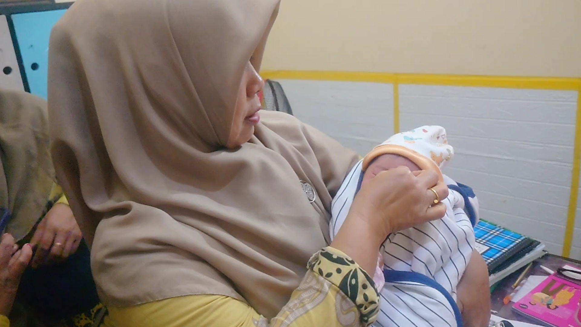 Setelah menelusuri lokasi, ketiganya dikejutkan oleh pemandangan tak biasa — seorang bayi tergeletak di berugak dengan kondisi masih hidup. Tanpa menunggu lama, mereka membawa bayi tersebut ke rumah Mohammad Hasiyeim yang berada tak jauh dari lokasi penemuan untuk mendapatkan perlindungan sementara.