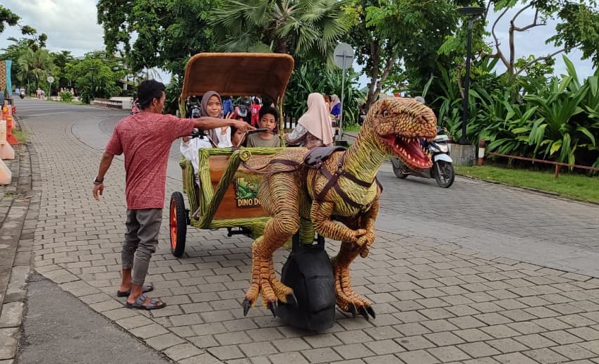“Di Lombok masih banyak dokar yang menggunakan kuda. Dari situ saya punya inspirasi untuk membuatnya lebih modern, salah satunya dengan menambahkan replika dinosaurus,” jelasnya.